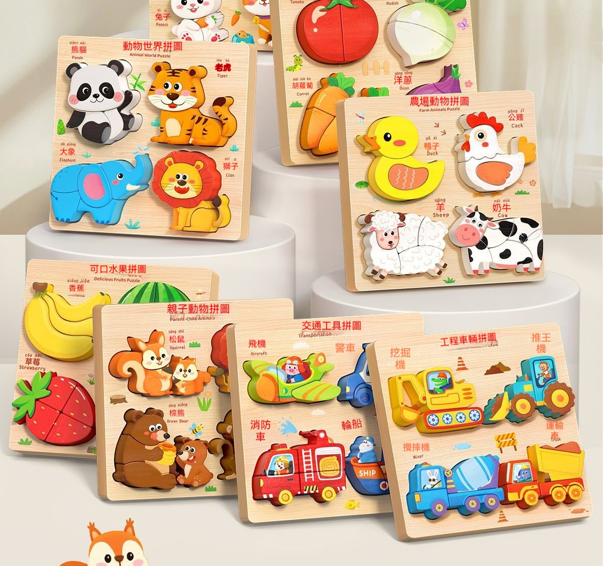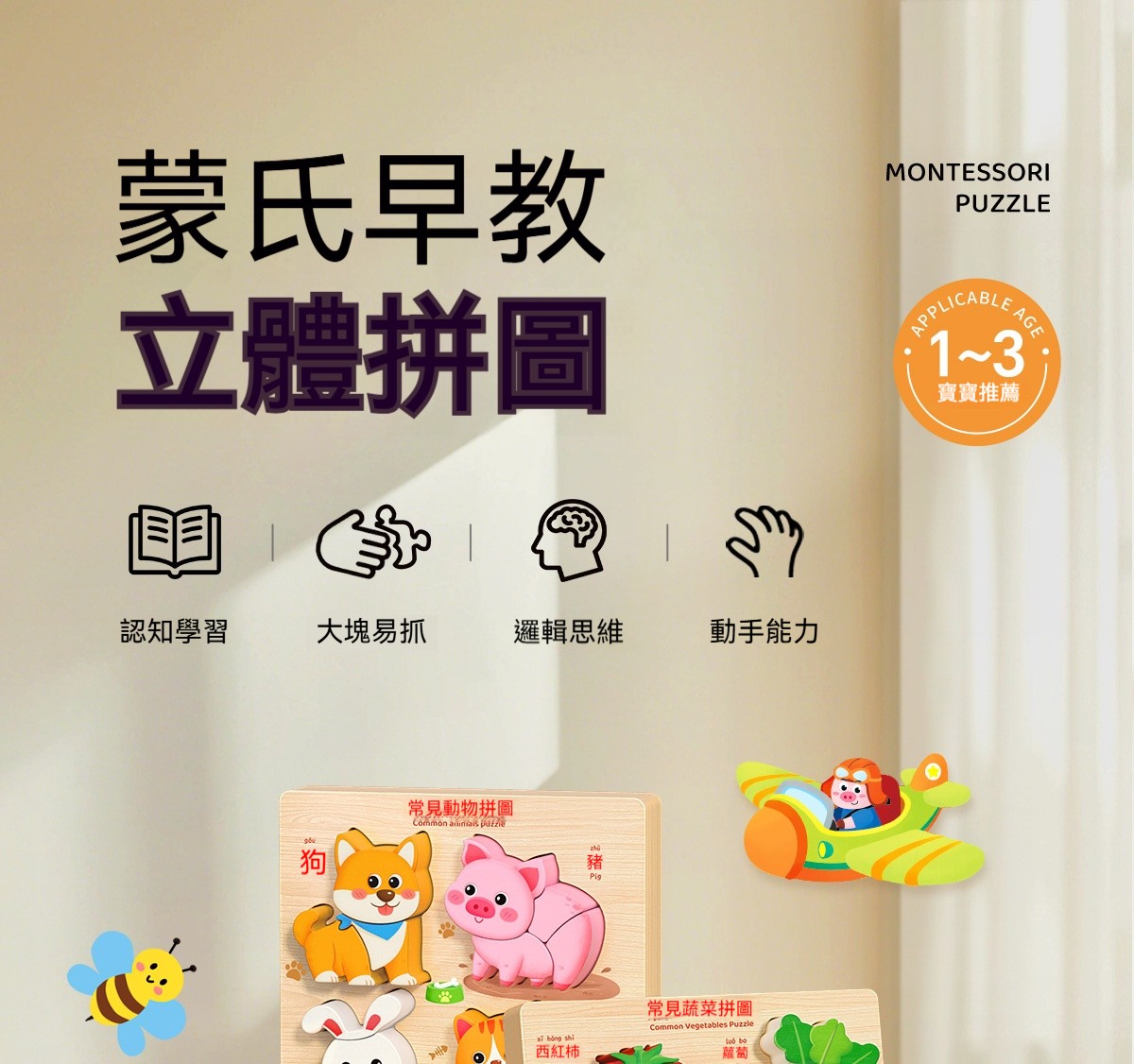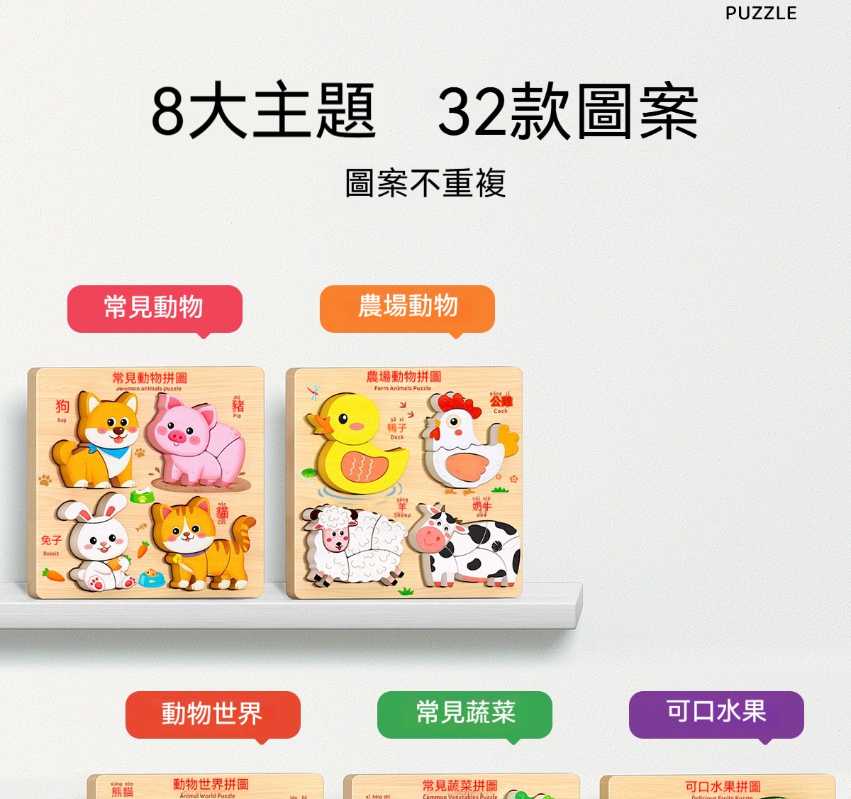 蒙氏早教立體拼圖板|木質益智積木+32種認知造型|培養專注力與動手能力的寶寶啟蒙玩具!