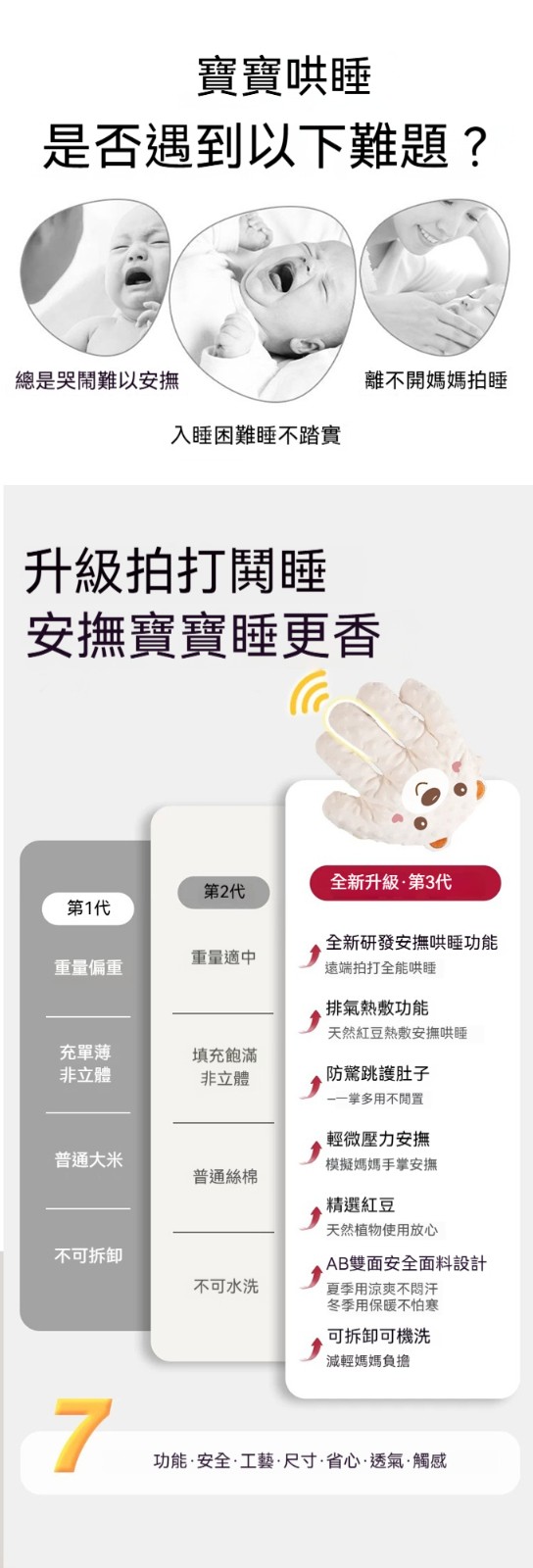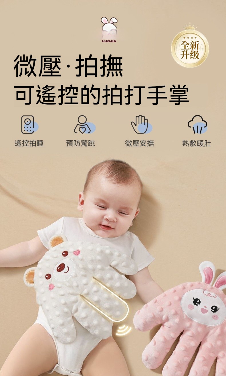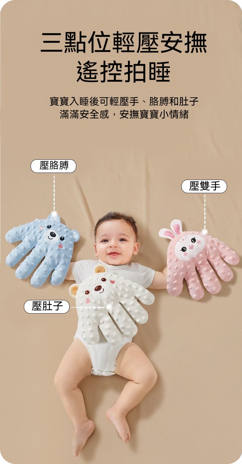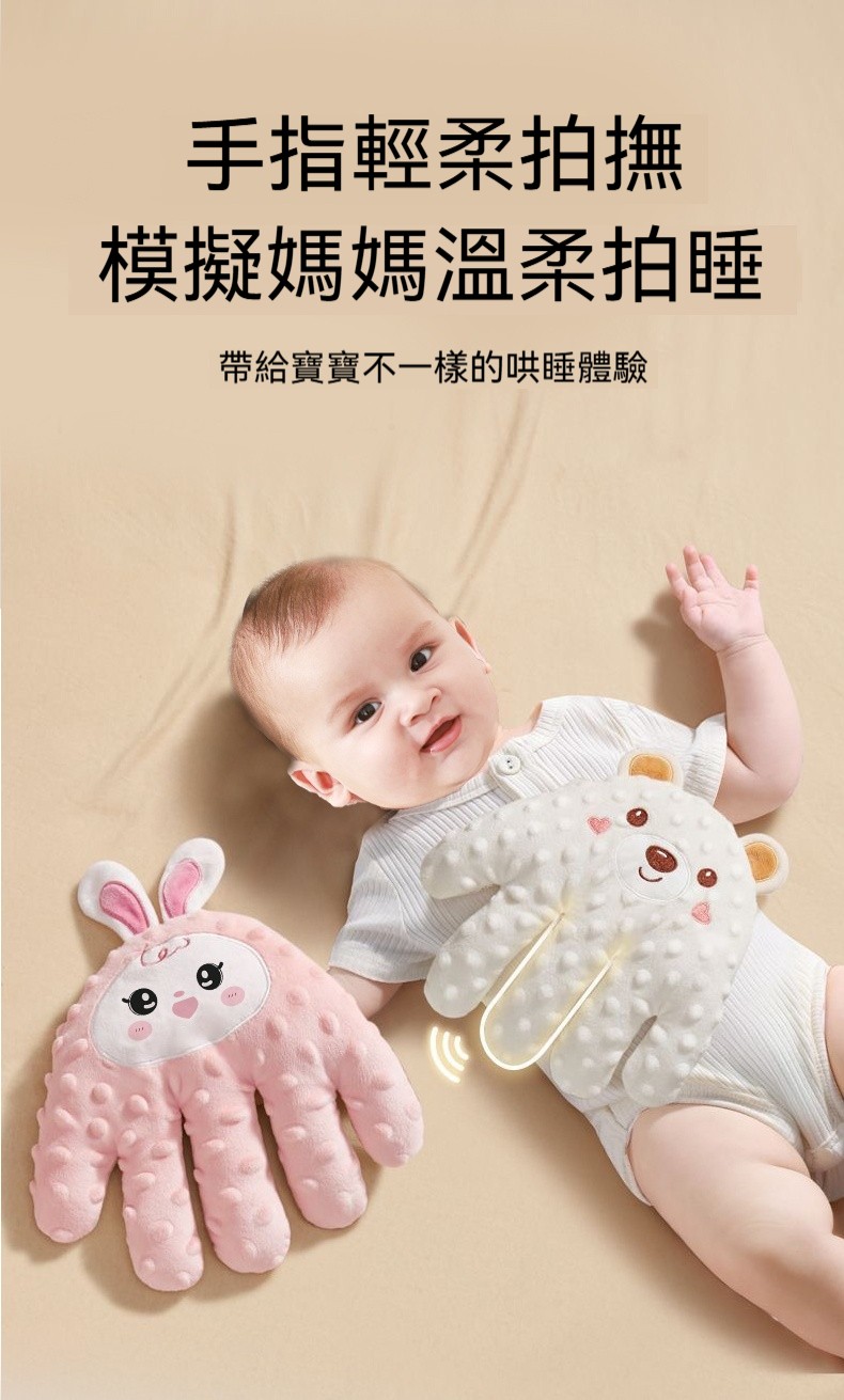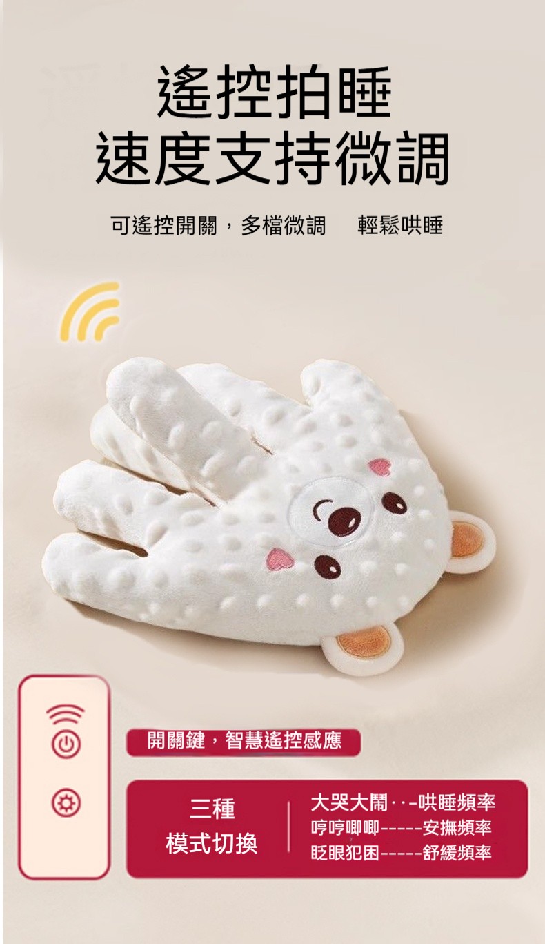 【仿生安撫拍睡枕】一鍵遙控|模擬手掌拍撫|可拆洗|3D豆豆絨熱敷暖肚,給寶寶溫柔的包裹感✨
